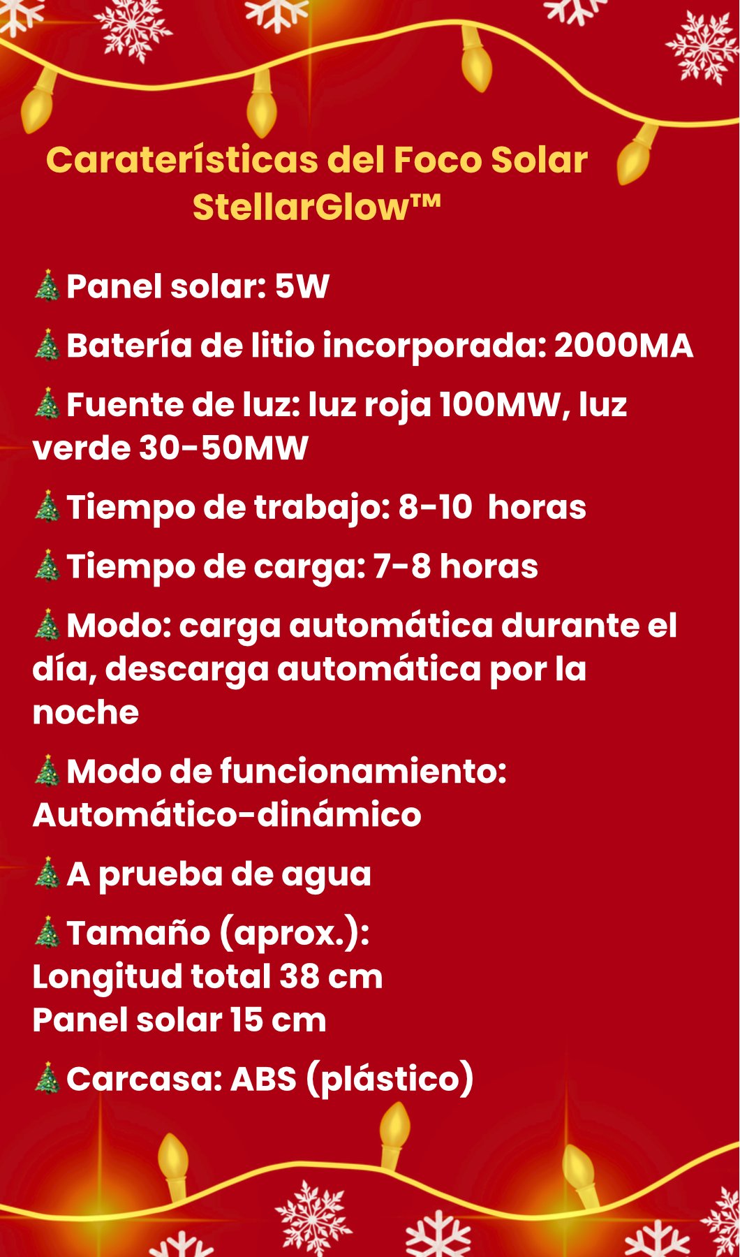 🎄 StellarGlow no es solo iluminación: es un espectáculo visual que transforma cualquier espacio sin gastar en electricidad. Se enciende automáticamente en la noche para llenar tu hogar con luces vibrantes que cubren desde una fachada hasta una habitación entera.