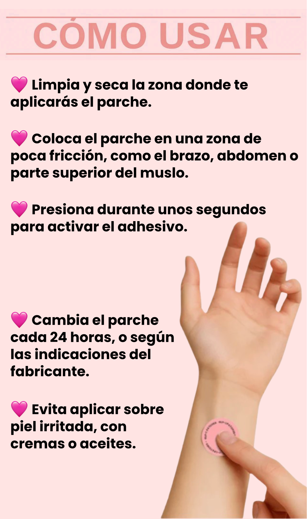 Su tecnología transdérmica permite que los activos se absorban directo por la piel durante 24 horas, sin que tengas que tomar nada ni cambiar tu rutina.