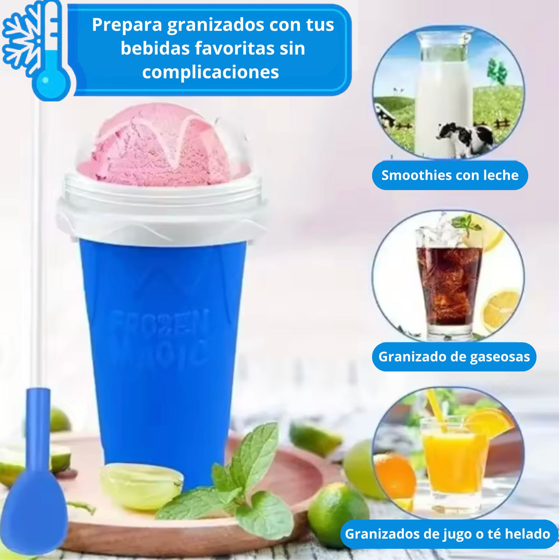 Solo aprieta, mezcla… ¡y disfruta tu granizado al instante! 🧊✨