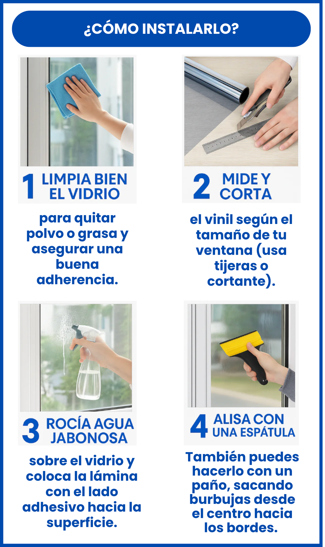 Instálalo tú mismo en minutos y olvídate de cortinas pesadas o costos extras.